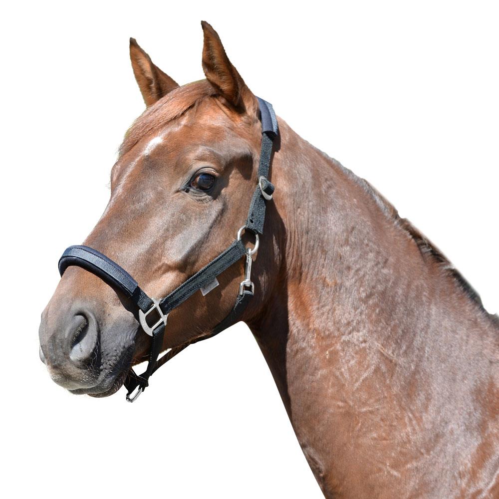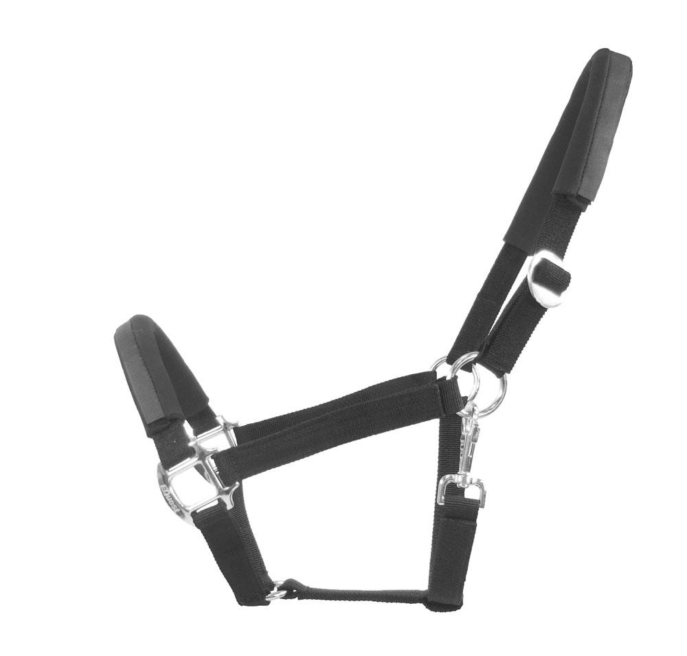 Besonderes Merkmal sind die elastischen Einsätze im Nasen- und Genickbereich. Diese dehnen sich bei ruckartigem Zug, etwa in Paniksituationen, und mindern so den Druck auf empfindliche Kopfpartien. Das reduziert effektiv die Verletzungsgefahr für das Pferd.