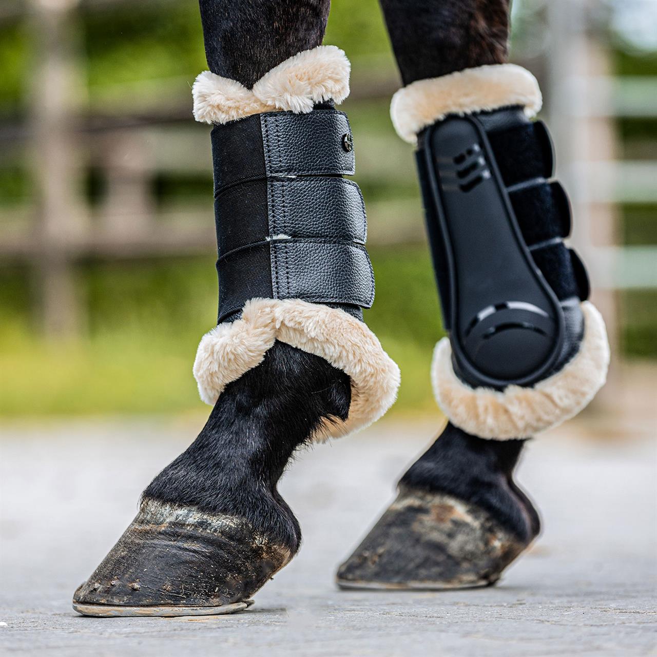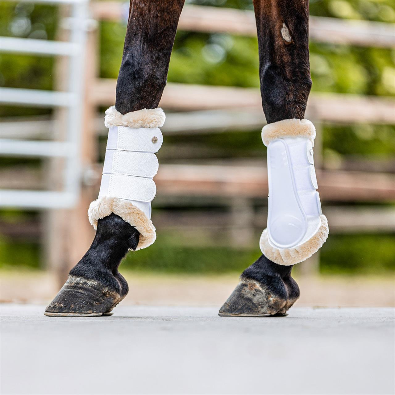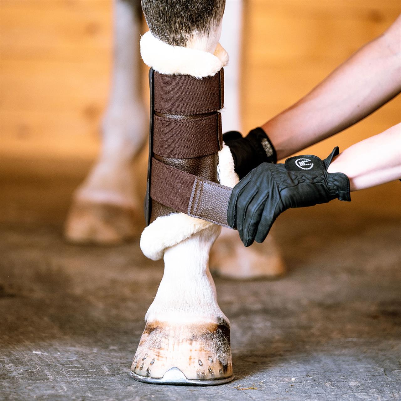 Halten Sie die empfindlichen Beine Ihres Pferdes mit unserer pflegeleichten Gamasche sicher und komfortabel. Die integrierte Hartschale verhindert Verletzungen, während das weiche Weblammfell die Sehnen und Bänder unterstützt und sich optimal an das Pferdebein anpasst. Die Gamasche ist mit stabilen Klettverschlüssen ausgestattet, um eine individuelle Anpassung an das Pferdebein zu ermöglichen und einen optimalen Sitz zu gewährleisten. Diese Gamasche ist sowohl für Vorder- als auch Hinterbeine geeignet und bietet Schutz und Komfort für Ihr Pferd.