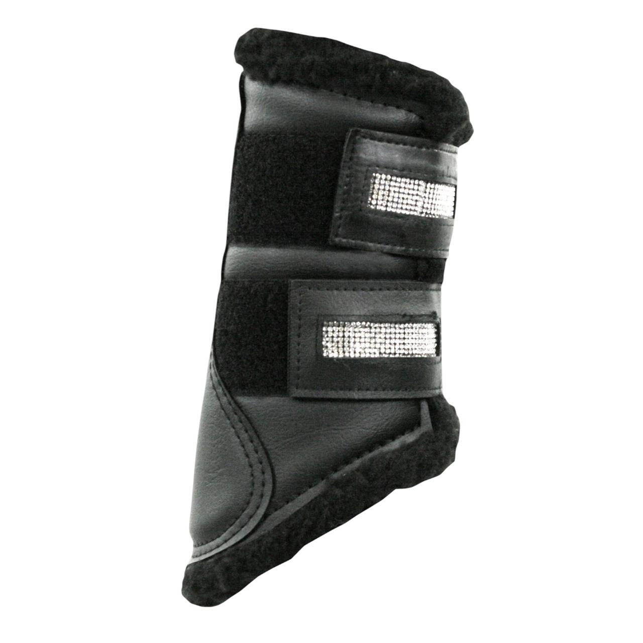 Die pflegeleichte Gamasche schützt das Pferdebein vor Verletzungen. Dank des weichen Weblammfells passt sich die Gamasche optimal dem Pferdebein an und unterstützt gleichzeitig Sehnen und Bänder. Durch die stabilen Klettverschlüsse lässt sich die Gamasche individuell ans Pferdebein anpassen und ein optimaler Sitz wird garantiert. Die Gamasche ist für Vorder- und Hinterbeine geeignet und mit funkelnden Crystal-Steinen verziert.