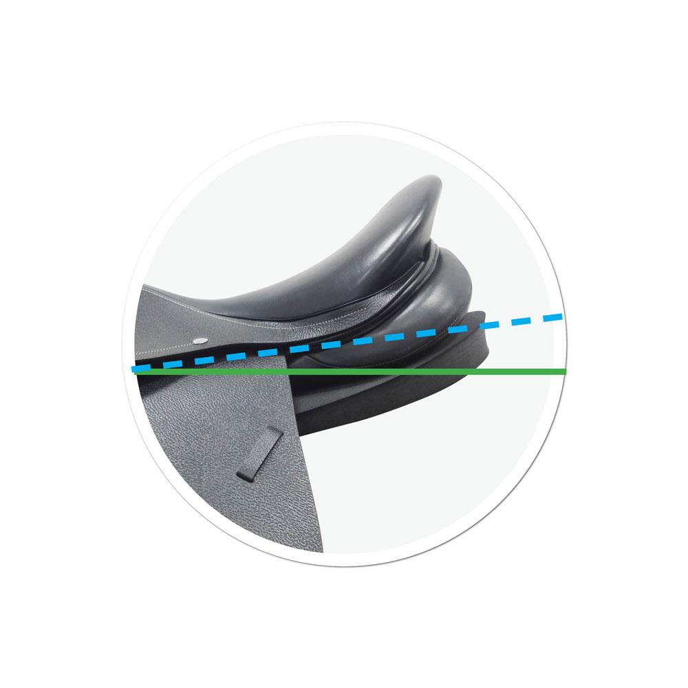 Das keilförmige Kissen aus rutschfestem Zellkautschuk Material wirkt extrem schockabsorbierend und schluckt den Stoß in der Sattellage. Das Pad ist von 12 mm auf 38 mm nach hinten erhöht, wodurch der Sattel eine leichte Neigung nach vorne bekommt. Die Aussparung im Widerristbereich ermöglicht eine maximale Wirbelsäulenfreiheit in der vorderen Rückenlage.